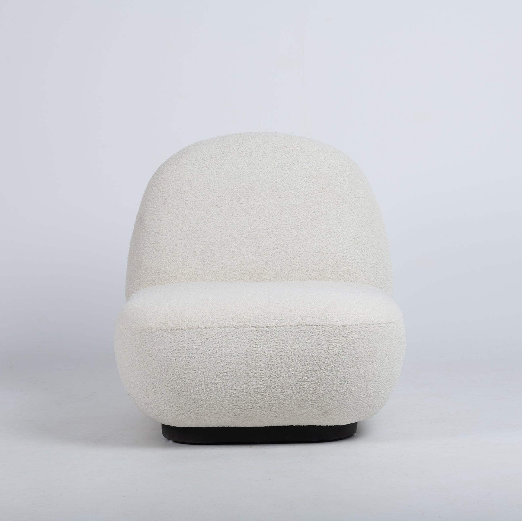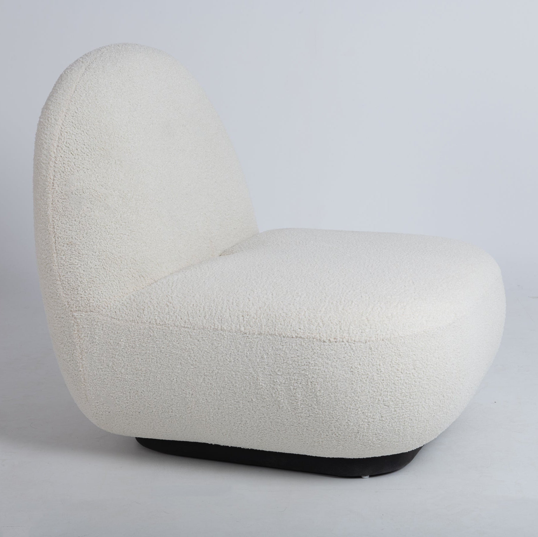 The Cloud Rest Chair, a modern and minimalist sanctuary of comfort and style, is the perfect accent piece to elevate your space. With its softly rounded silhouette and low, inviting profile, it embodies effortless relaxation and understated elegance. Upholstered in a textured off-white cotton blend, the cloud-like form rests on a discreet matte black metal base, offering both visual lightness and sturdy support.