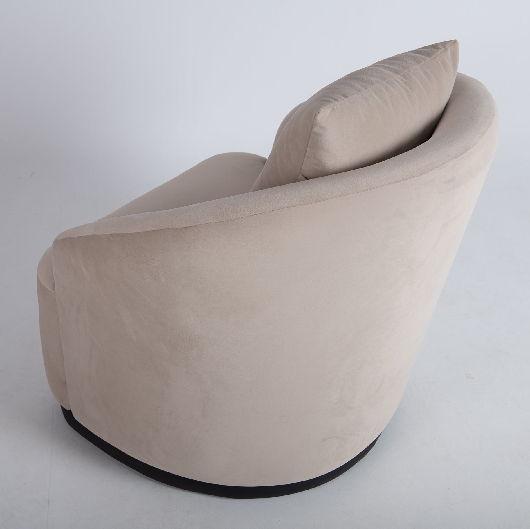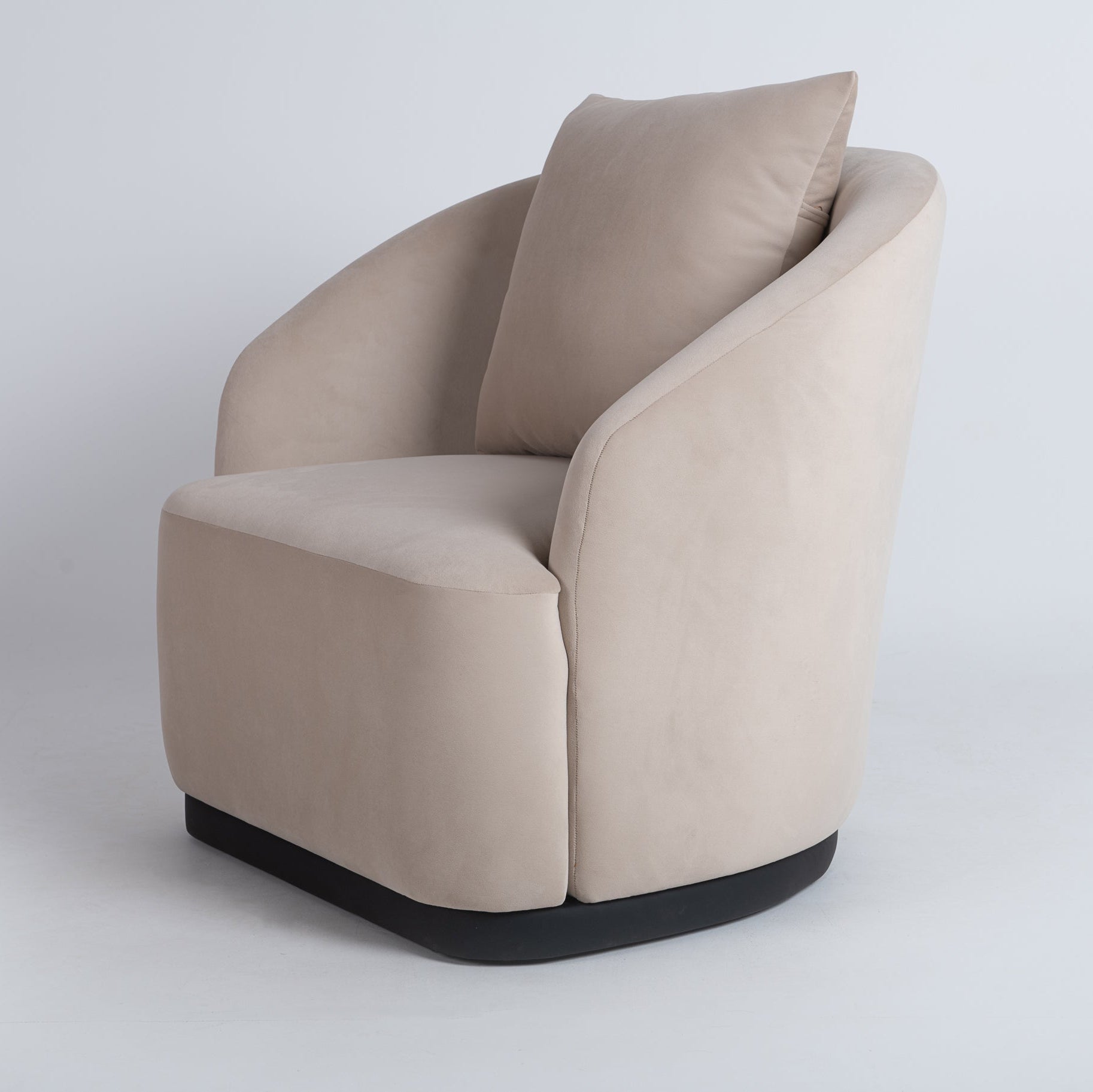 The Luna Lounge Chair/ The Nestle Chair / The Sandstone Chair invites you to sink into serenity with its sculpted curves and enveloping form. The gently arched backrest and contoured arms cradle the body, creating a sense of calm and comfort. Upholstered in a soft, sand-toned cotton-blend fabric, its plush silhouette rests on a stable, low-profile base, grounding the chair while elevating its presence. Crafted to bring warmth, tranquility, and timeless elegance to any space, it is the perfect blend of comfort and sophistication.